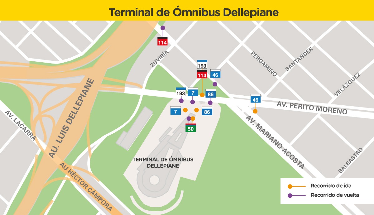 Las conexiones desde y hacia Terminal Dellepiane según cada línea son entonces: