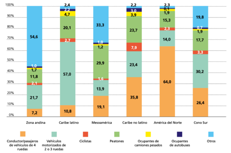 En todo el mundo los motociclistas representan el 28% del total de fallecidos por siniestros de tránsito. Mientras que en países de bajos y medianos ingresos, este porcentaje es sensiblemente superior. Por ejemplo, en el Caribe Latino (Cuba y República Dominicana), los usuarios de vehículos de dos y tres ruedas representan el 57% del total de fallecidos (OPS, 2019), y en Sudamérica (Colombia, Paraguay y Uruguay) ya han superado el umbral del 50% según cifras oficiales.
